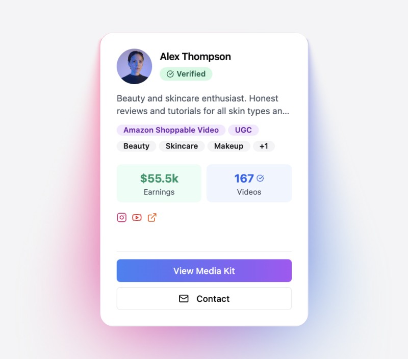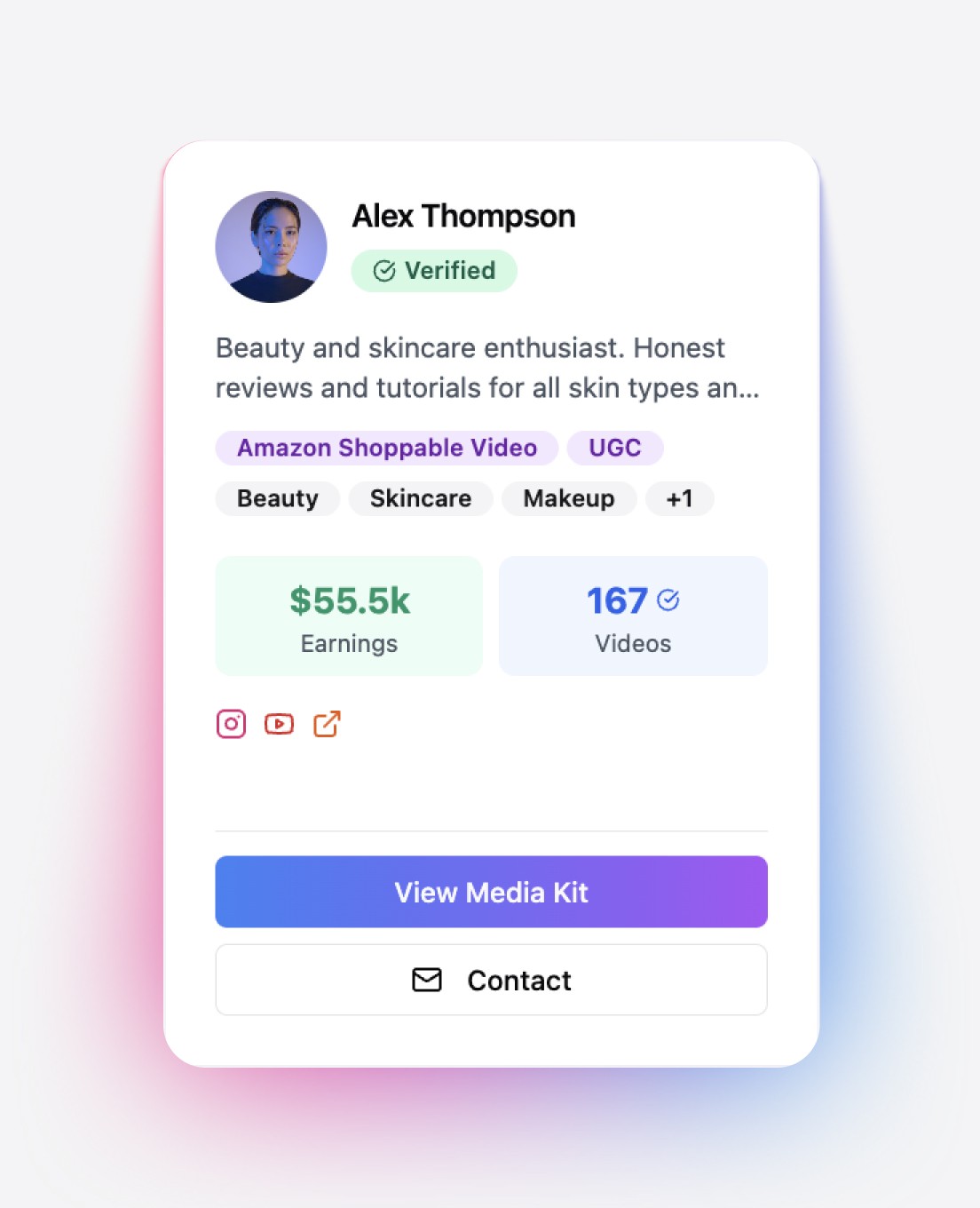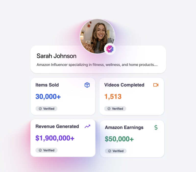 Get instant access to vetted, verified creators who make your products convert. Filter by marketplace, category, revenue generated, number of videos, and more.