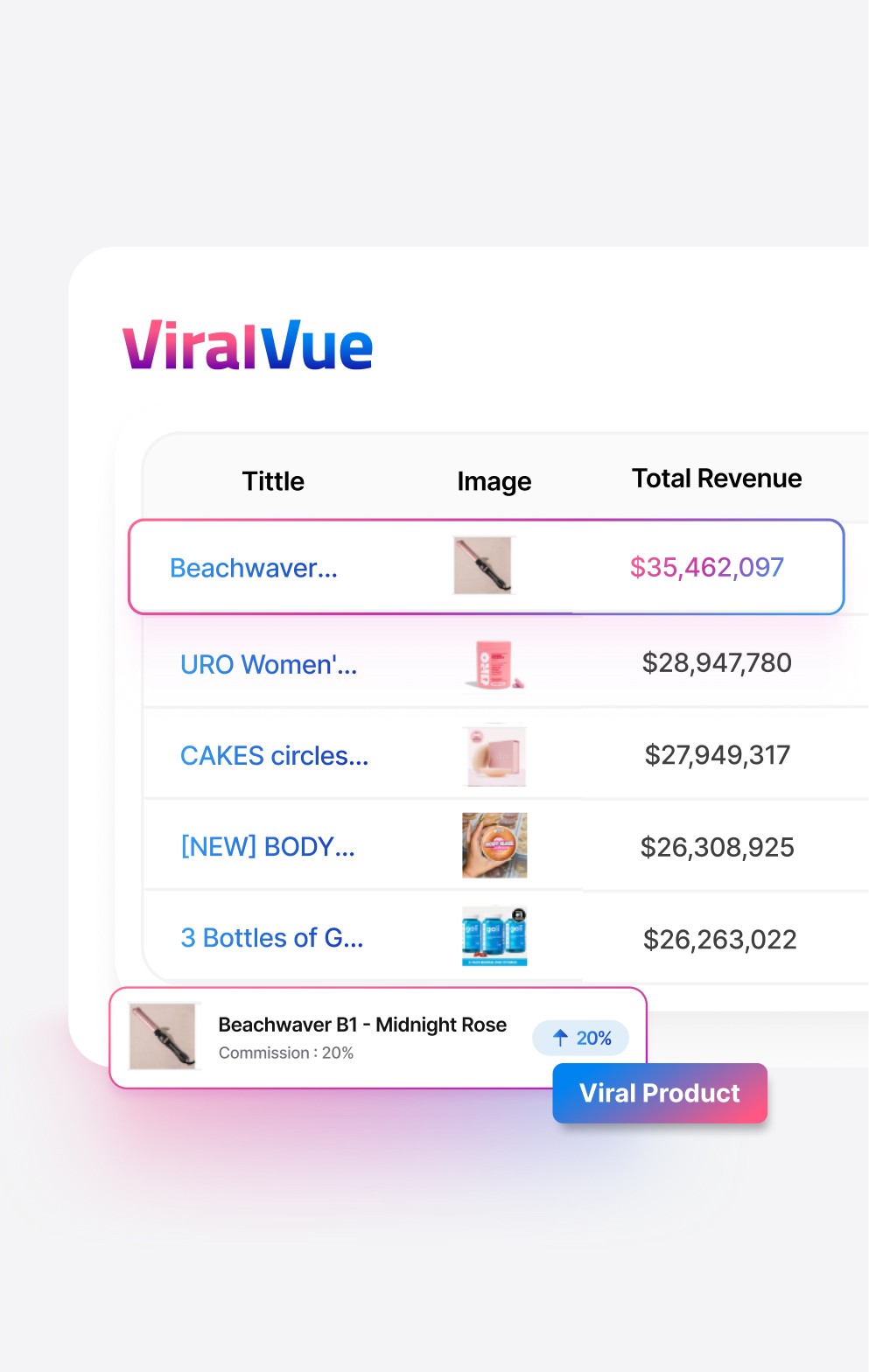 From product discovery to performance tracking,Viral Vue gives you everything to turn views into commissions: