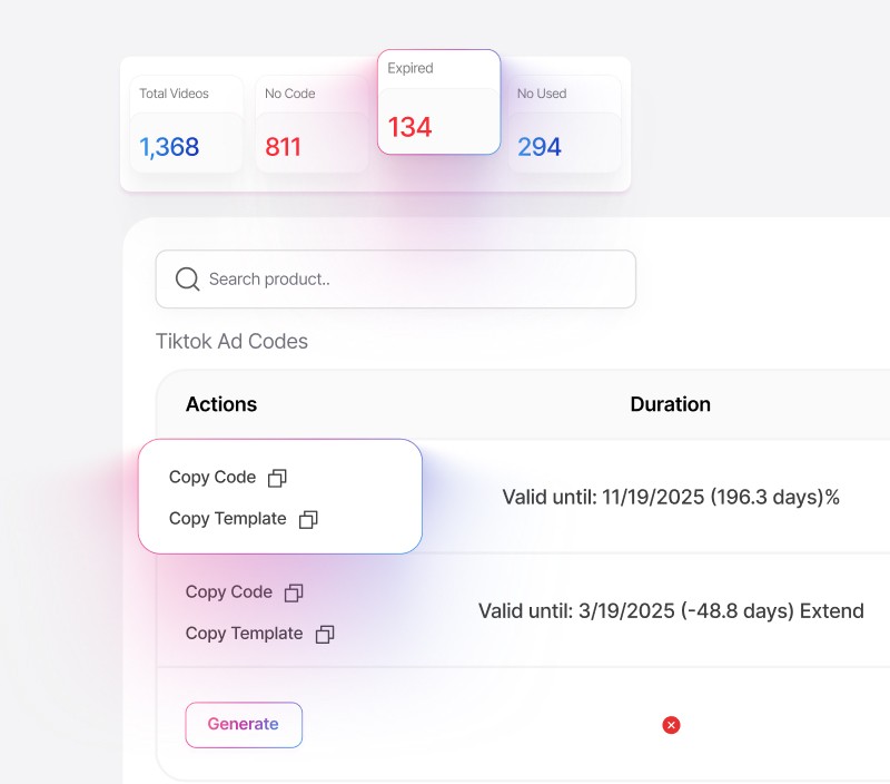 Generate, track, and manage ad codes in one click. Plug-and-play templates make sending codes to sellers instant, so no more 20-click chaos.
